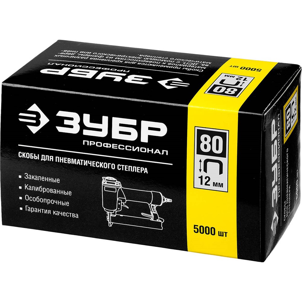 ЗУБР 12 мм скобы для степлера тонкие широкие тип 80, 5000 шт