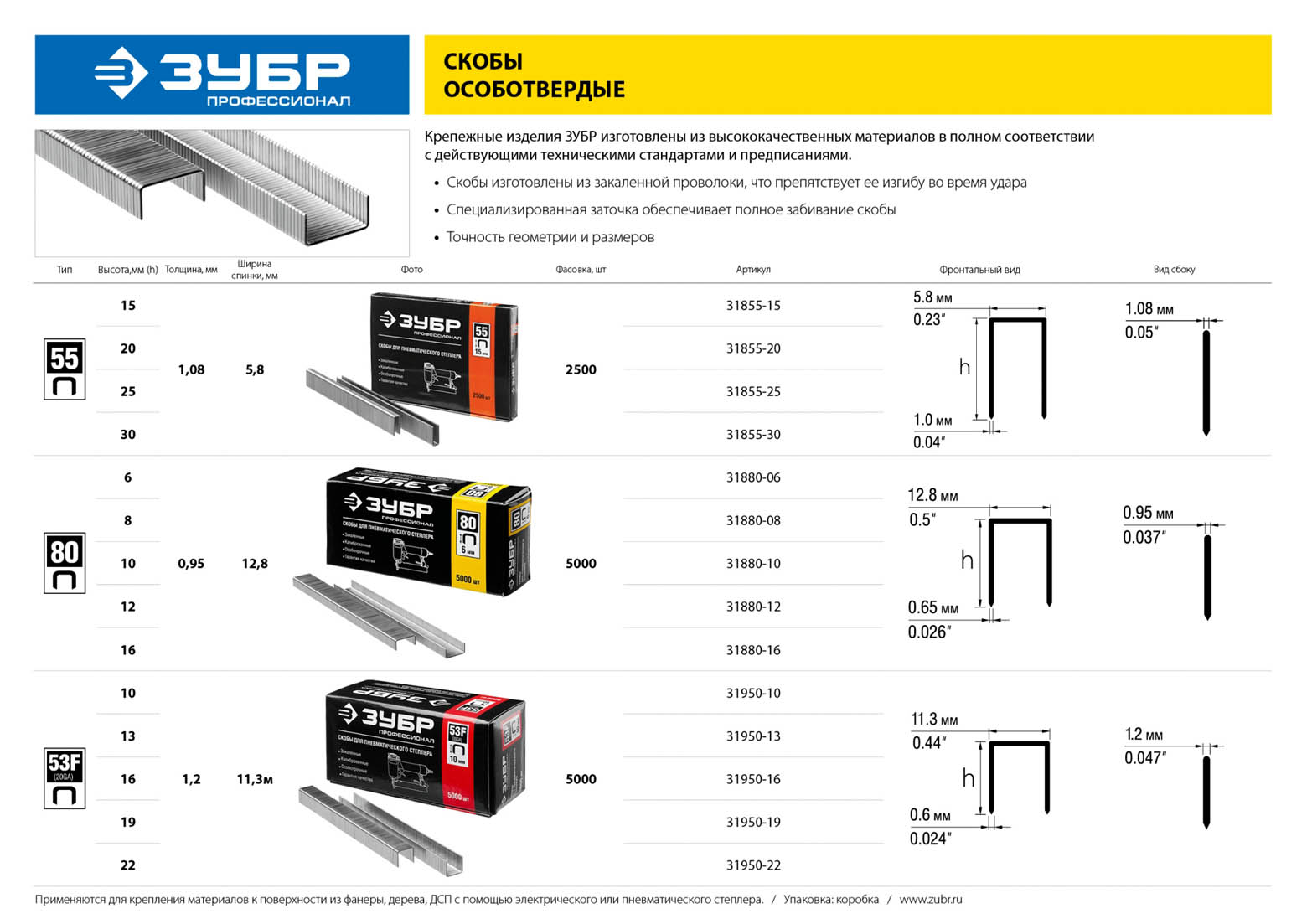 Скобы ЗУБР 31880-12, предназначены для скрепления листовых материалов – бумаги, картона, кожи, пленок между собой с помощью степлера.