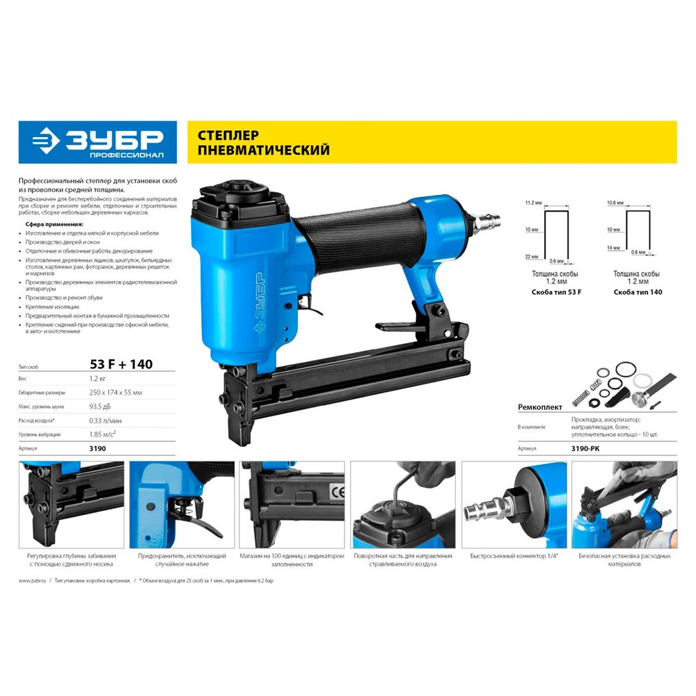 Ремонтный комплект ЗУБР 3190-РК, оптимальный набор запасных частей для пневмостеплера ЗУБР 3190.