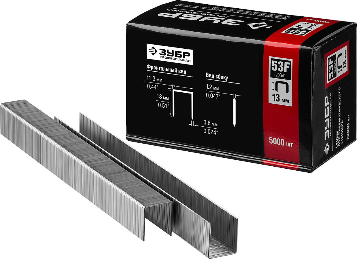 ЗУБР 13 мм скобы для степлера плоские тип 53F, 5000 шт
