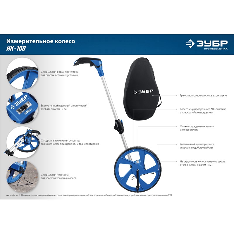 - Колесо из ударопрочного ABS-пластика с износостойким покрытием и нанесенной измерительной шкалой с шагом 1 см