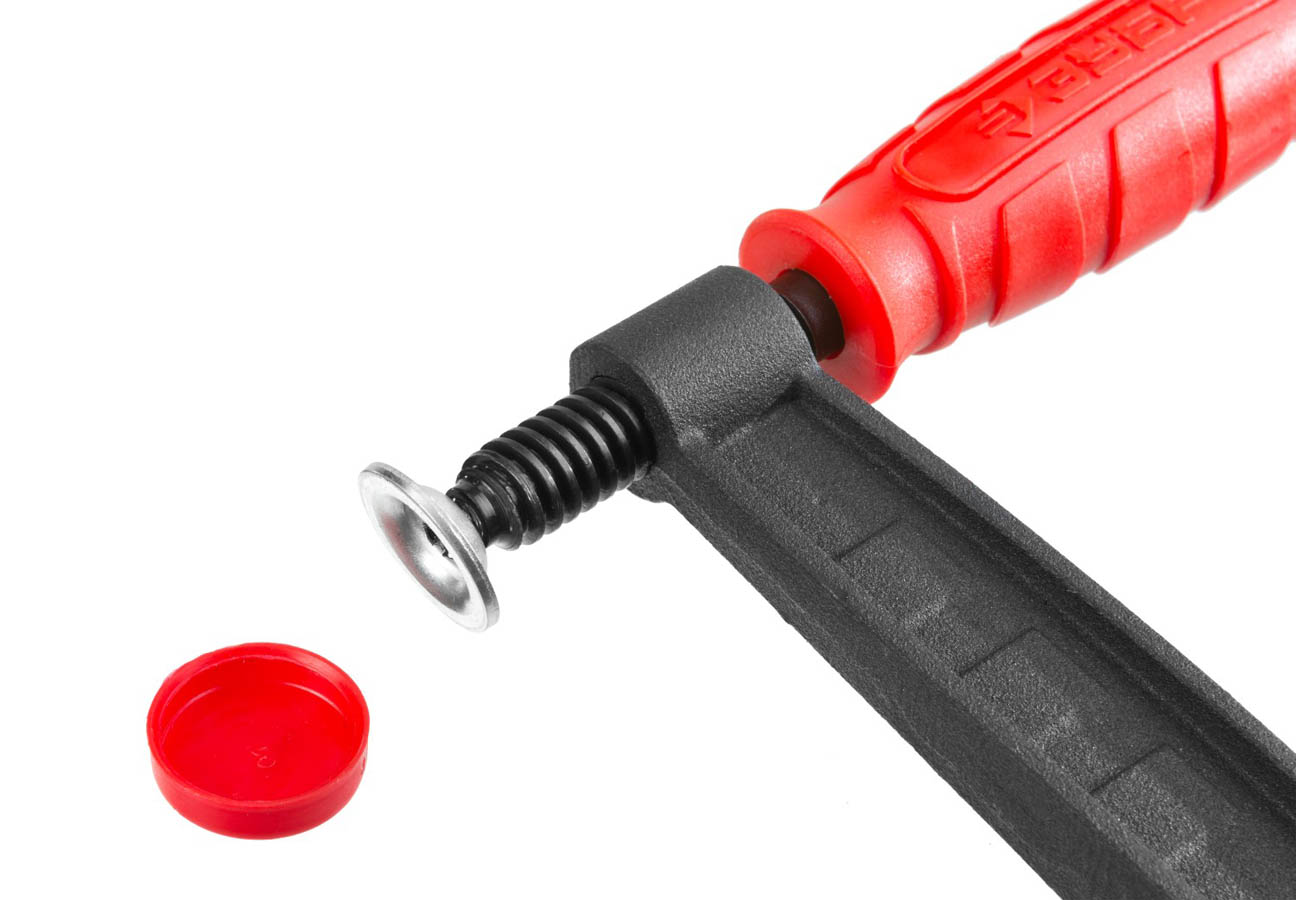 Струбцина ЗУБР 32150-120-800, применяется для фиксации и удержания деталей при выполнении столярных и слесарных работ. Двухкомпонентная противоскользящая рукоятка. Особо усиленная рейка из закаленной стали. Корпус изготовлен из высокопрочного чугуна. Трапецеидальная резьба для лучшей передачи усилия и легкого хода. Пластиковые накладки на губках предотвращают повреждения.