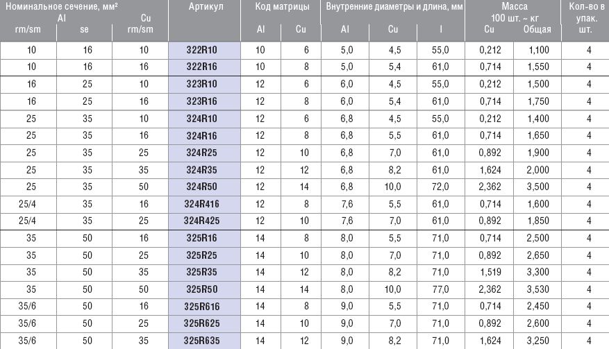 Алюмомедные соединители для жил разных сечений, 16/25/10 мм KLAUKE 323R10