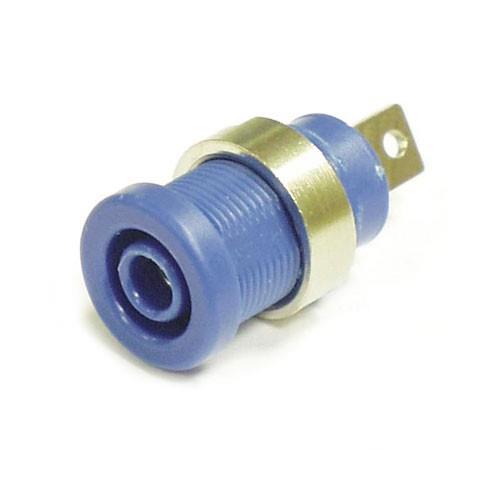 Гнездо 3266B внутренним диаметром 4 мм с двойной изоляцией с гаечным креплением и ножевым соединением (пластина 6мм*8,5мм с центральным отверстием). Высота пластиковой части 23 мм, внешний диаметр 12 мм. Защита по CAT 3, максимальный ток 25 А, максимальное напряжение 1000 V, контактное сопротивление не более 5 мОм. Цвет синий.