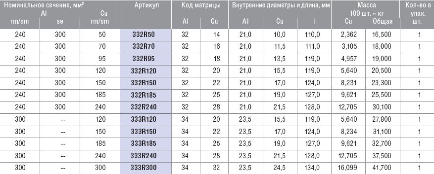 Алюмомедные соединители для жил разных сечений, 240/300/70 мм KLAUKE 332R70