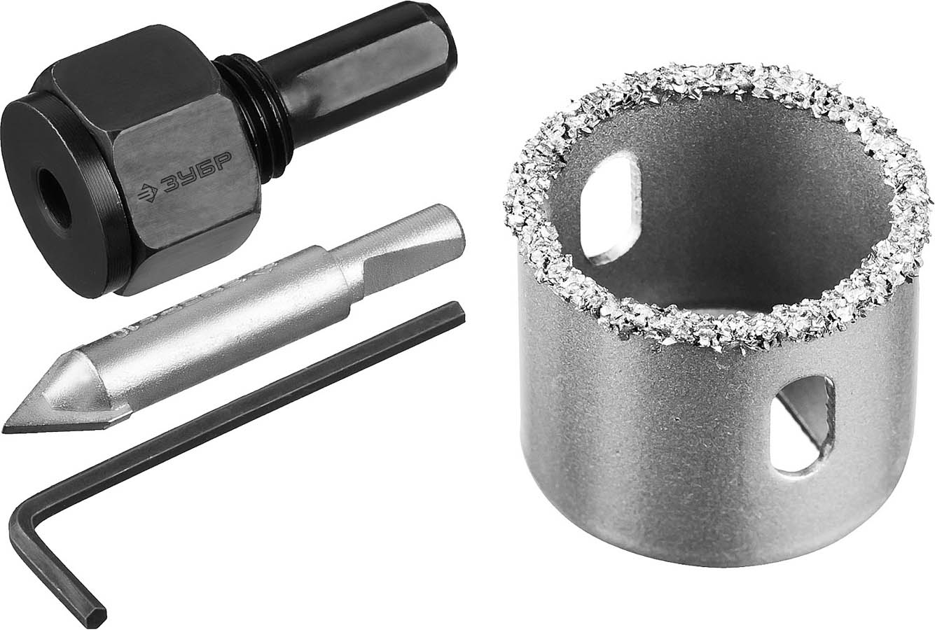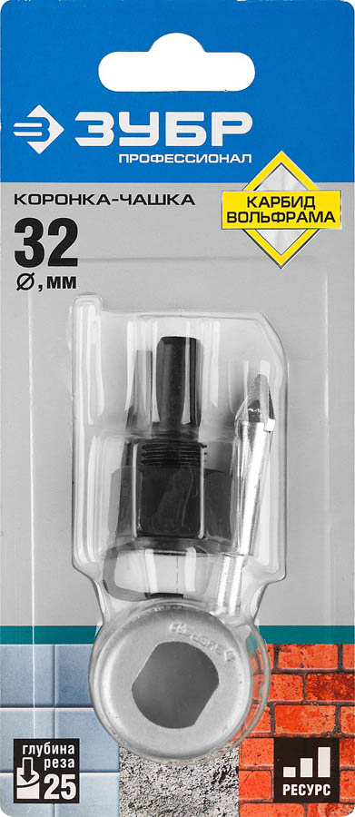 Коронка-чашка ЗУБР "ПРОФЕССИОНАЛ" c карбид-вольфрамовым нанесением, 32 мм, высота 25 мм, в сборе с державкой и сверлом