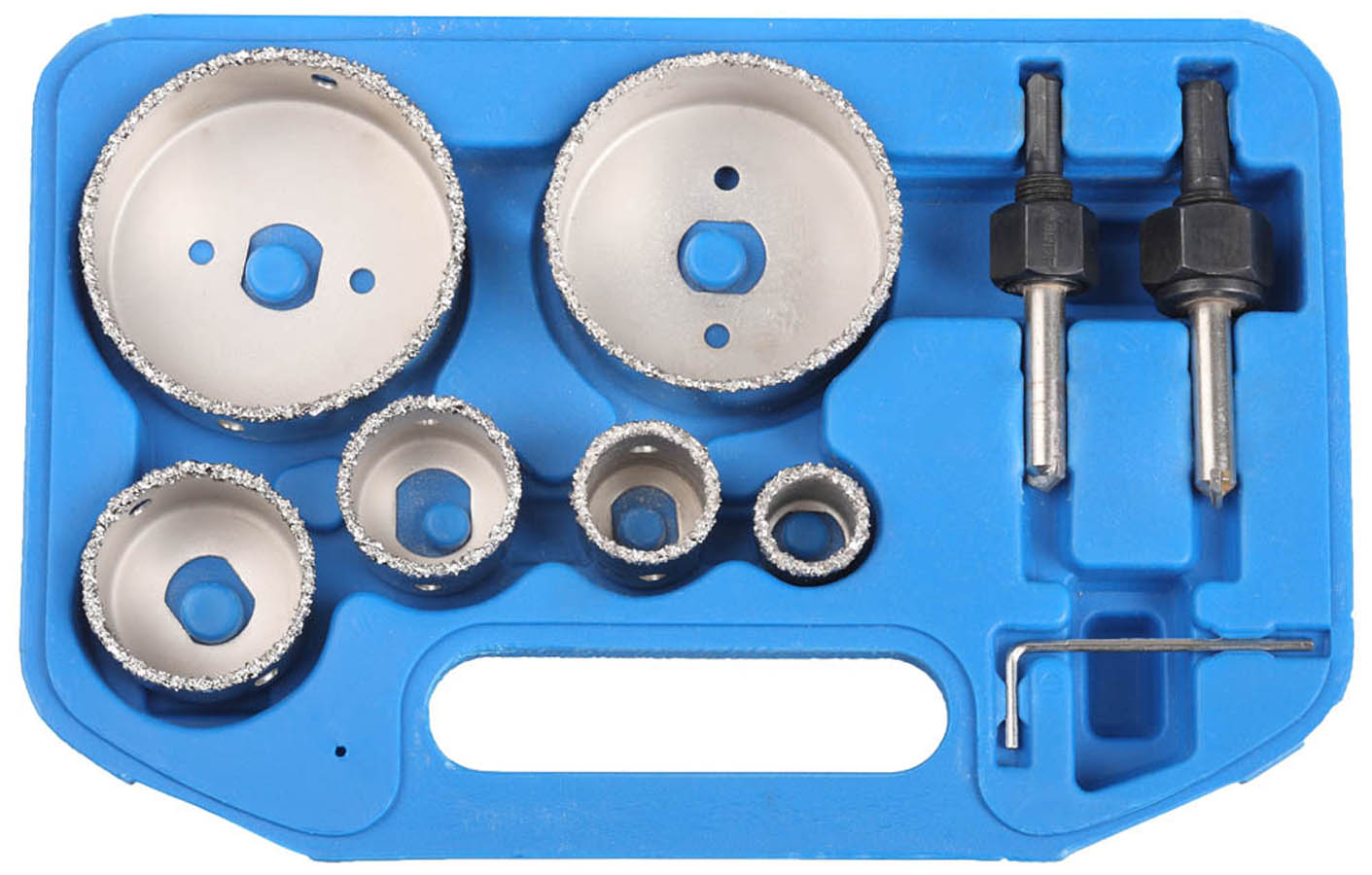 Набор коронок-чашек с оснасткой ЗУБР 33360-H6, предназначен для получения ровных отверстий в облицовочных материалах, а также в ячеистом бетоне, кирпиче и гипсокартоне. Используется на дрелях и легких перфораторах в режиме безударного сверления. Коронки-чашки с нанесением карбида вольфрама изготовлены из высокопрочной стали, имеют более широкий размерный ряд чем кольцевые коронки и позволяют сверлить средние и большие отверстия, с глубиной сверления до 25 мм. Равномерное нанесение карбид-вольфрамовой крошки обеспечивает аккуратное сверление материала без трещин и сколов. Новейшая технология автоматического нанесения и высокотемпературной спайки твердосплавной крошки к корпусу значительно повышает ресурс инструмента. Сверхпрочная связка твердосплавной крошки благодаря термической обработке в вакууме. Износостойкое покрытие защищает от коррозии.