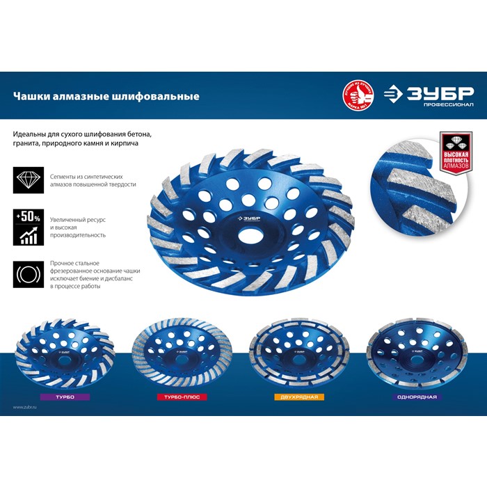 Чашки алмазные шлифовальные ″Двухрядные″ 33372-230 Зубр