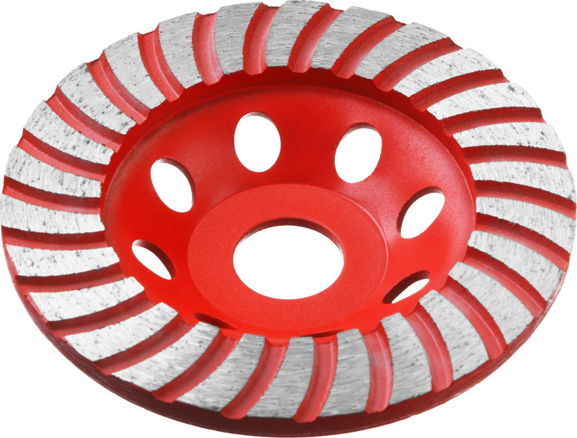 Алмазная чашка ЗУБР 33375-115, используется на УШМ для шлифования бетонных материалов, гранита, природного и искусственного камня. Не требует принудительного водяного охлаждения. Имеет отверстия для естественного охлаждения чашки в процессе шлифования. Корпус алмазной чашки изготовлен из высокопрочной стали. Высота алмазных сегментов 5 мм обеспечивает продолжительный рабочий ресурс шлифовальной чашки (до 700 квадратных метров площади). Два ряда алмазных сегментов для равномерного шлифования и большого объема работ. Фрезерованное основание чашки не допускает биения и дисбаланса в процессе работы. Каждое изделие проходит строгий контроль качества, особое внимание уделяется сбалансированности, т.к. инструмент работает на больших оборотах.