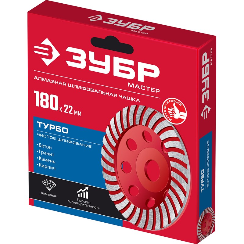 Сегментированная алмазная шлифовальная чашка Турбо d 180 мм Зубр 33375-180_z01