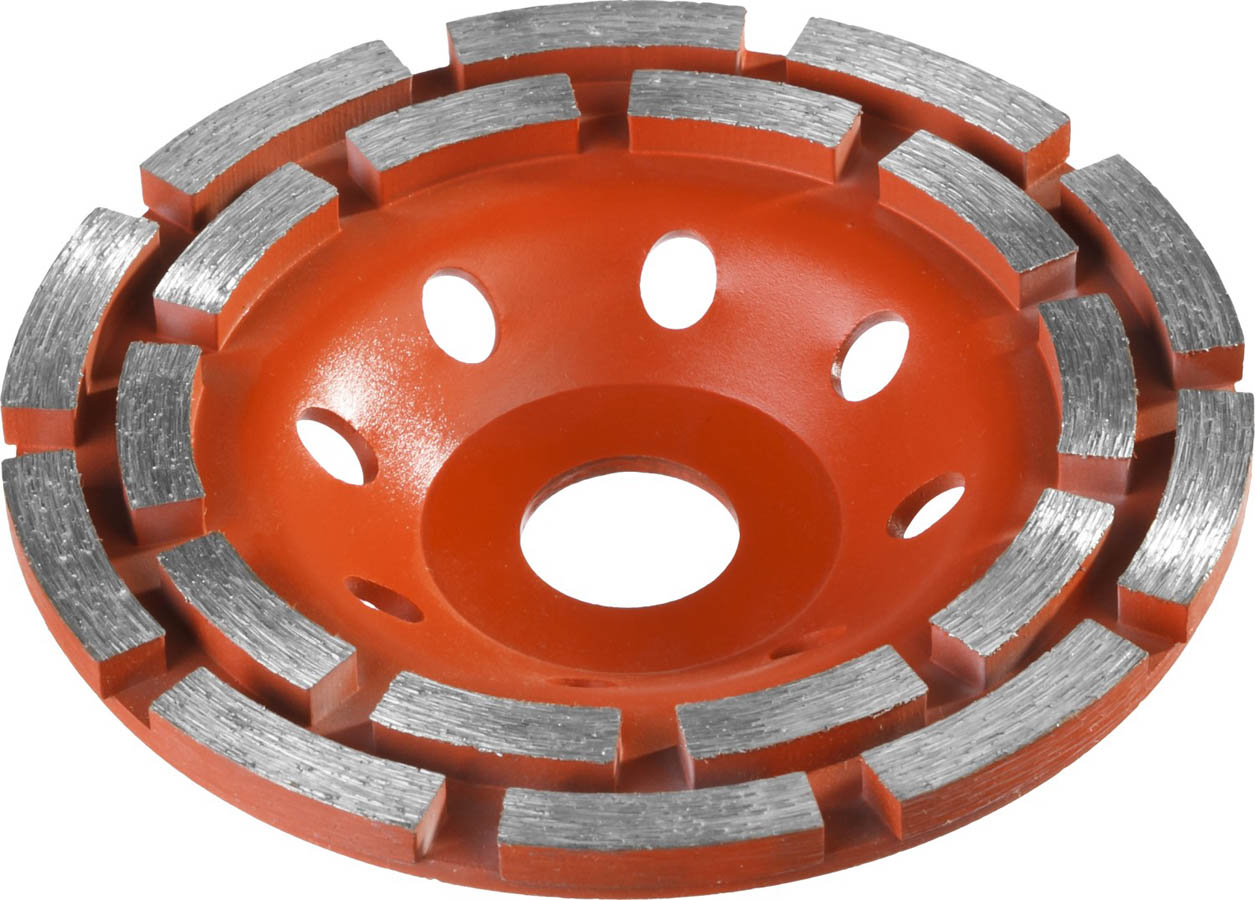 Алмазная чашка ЗУБР 33376-125, используется на УШМ для шлифования бетонных материалов, гранита, природного и искусственного камня. Не требует принудительного водяного охлаждения. Имеет отверстия для естественного охлаждения чашки в процессе шлифования. Корпус алмазной чашки изготовлен из высокопрочной стали. Высота алмазных сегментов 5 мм обеспечивает продолжительный рабочий ресурс шлифовальной чашки (до 700 квадратных метров площади). Два ряда алмазных сегментов для равномерного шлифования и большого объема работ. Фрезерованное основание чашки не допускает биения и дисбаланса в процессе работы. Каждое изделие проходит строгий контроль качества, особое внимание уделяется сбалансированности, т.к. инструмент работает на больших оборотах.