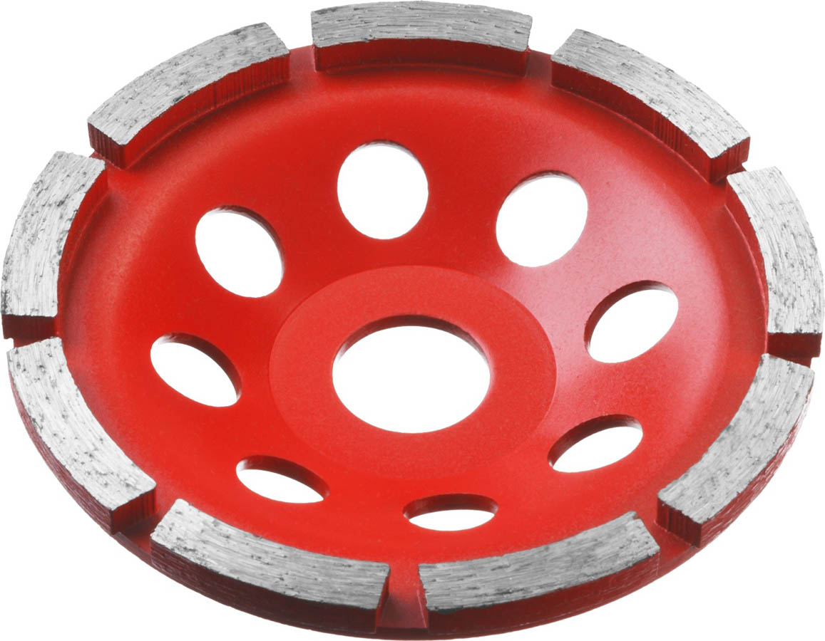 Алмазная чашка ЗУБР 33377-125, используется на УШМ для шлифования бетонных материалов, гранита, природного и искусственного камня. Не требует принудительного водяного охлаждения. Имеет отверстия для естественного охлаждения чашки в процессе шлифования. Корпус алмазной чашки изготовлен из высокопрочной стали. Высота алмазных сегментов 5 мм обеспечивает продолжительный рабочий ресурс шлифовальной чашки (до 400 квадратных метров площади). Однорядная сегментная рабочая поверхность чашки для быстрого чернового шлифования. Фрезерованное основание чашки не допускает биения и дисбаланса в процессе работы. Каждое изделие проходит строгий контроль качества, особое внимание уделяется сбалансированности, т.к. инструмент работает на больших оборотах.
