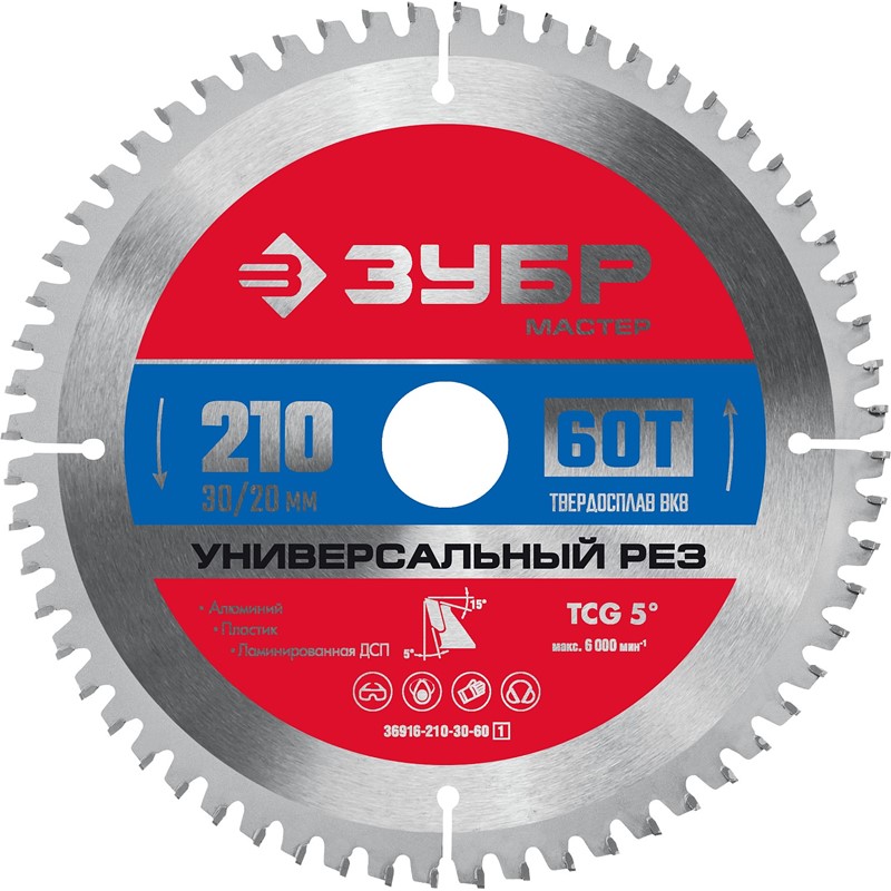 ЗУБР Универсальный рез 210 x 30/20мм 60Т, диск пильный по алюминию