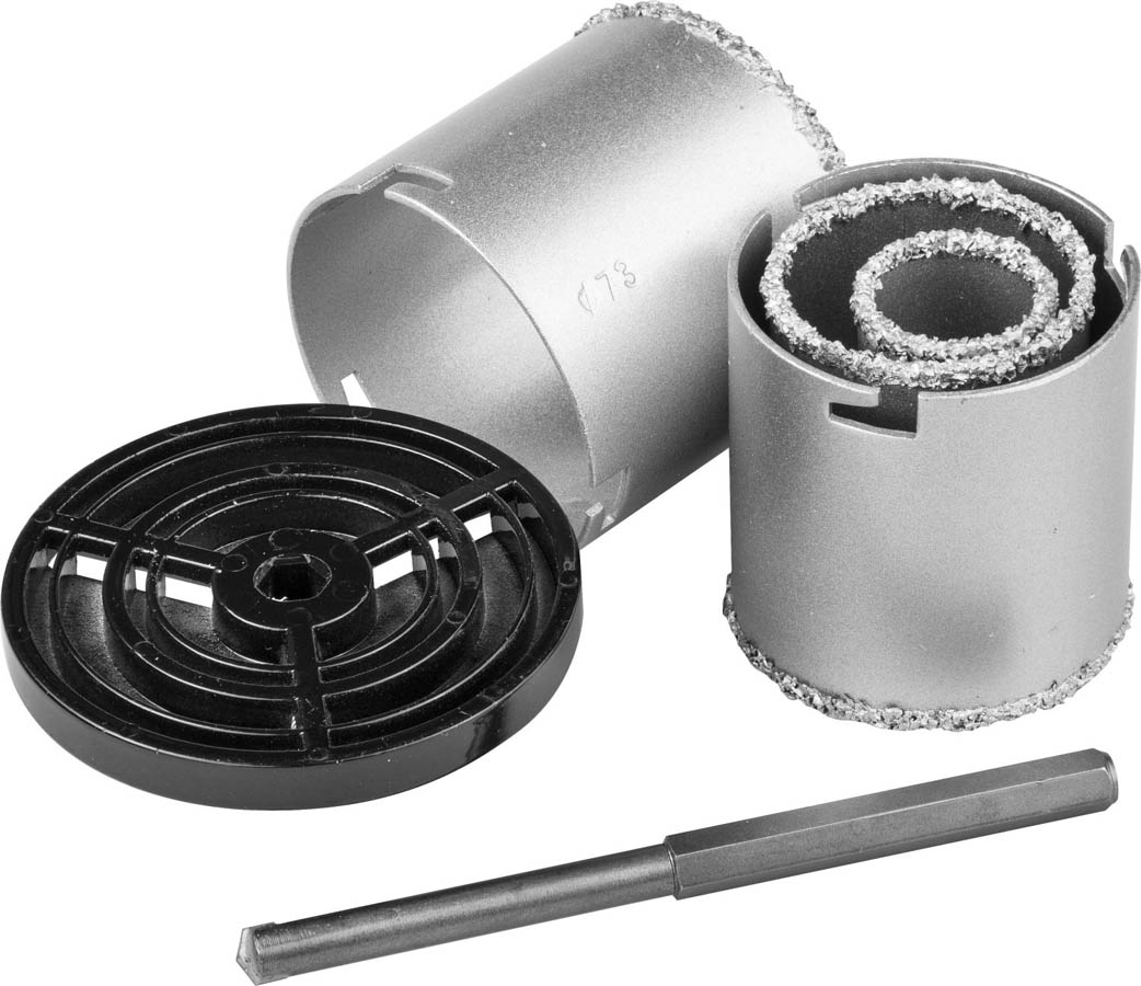 Набор буровых коронок с твердосплавным напылением KRAFTOOL 3340_z01, предназначен для получения ровных отверстий в облицовочных материалах, а также в ячеистом бетоне, кирпиче и гипсокартоне. Используется на дрелях и легких перфораторах в режиме безударного сверления. Коронки-чашки с нанесением карбида вольфрама изготовлены из высокопрочной стали, имеют более широкий размерный ряд, чем кольцевые коронки, и позволяют сверлить средние и большие отверстия. Равномерное напыление твердосплавных режущих элементов обеспечивает аккуратное сверление материала без трещин и сколов. Новейшая технология автоматического напыления и высокотемпературной спайки твердосплавной крошки к корпусу. Надежная связка карбида вольфрама благодаря термической обработке в вакууме.