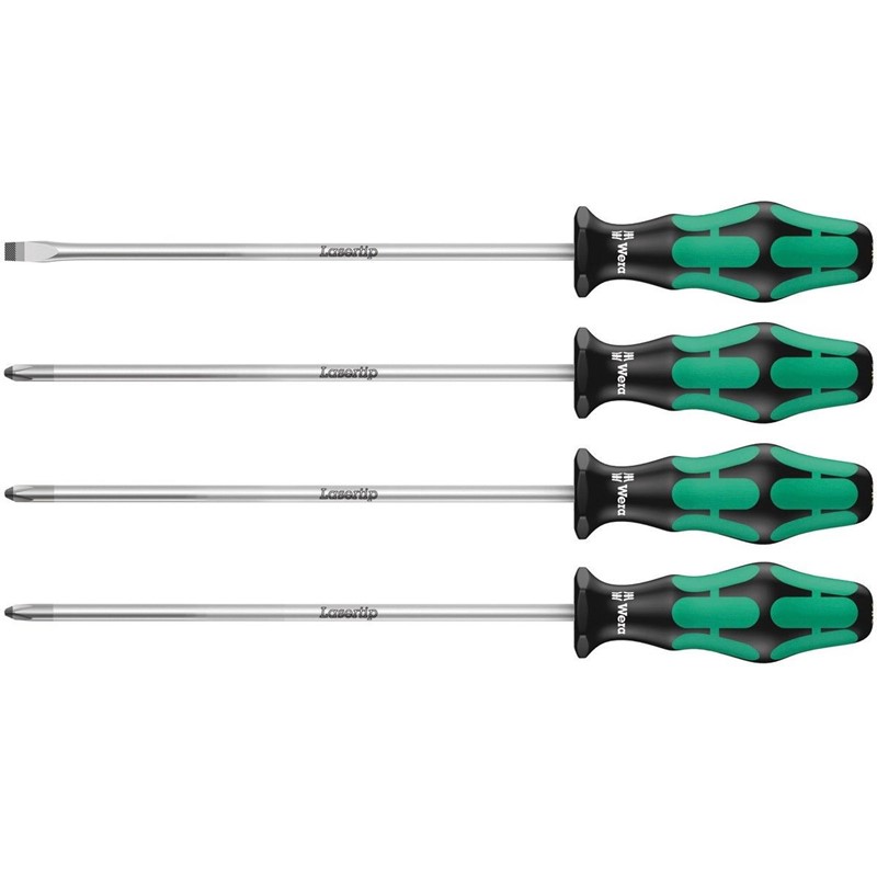 The Wera Kraftform Plus Long Screwdriver 4 Piece set has extra long series screwdrivers with chrome plated and ultra tough, 200mm hardened steel blades.