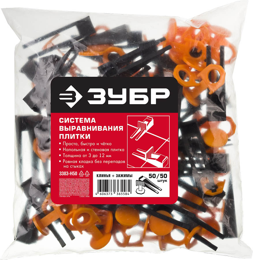 ЗУБР СВП комплект: 50+50шт (клин + зажим), система выравнивания плитки, в пакете.