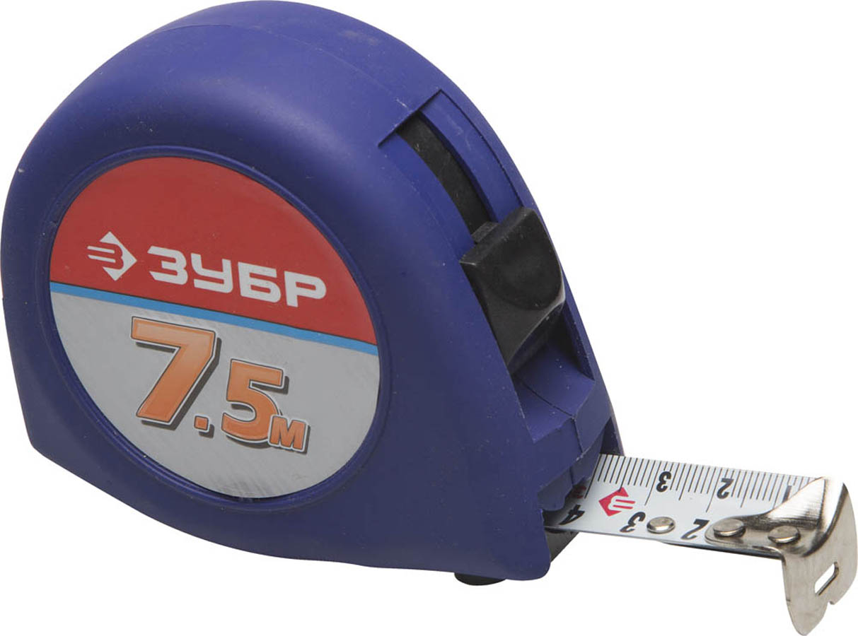 ЗУБР СТАНДАРТ 7.5м / 25мм рулетка с ударостойким корпусом (ABS) и противоскользящим покрытием