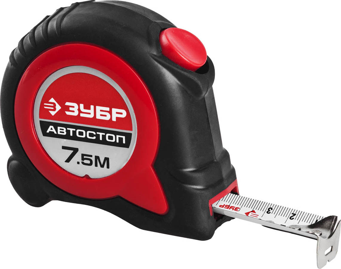 ЗУБР АВТОСТОП 8м / 25мм рулетка с автостопом и ударостойким обрезиненным корпусом