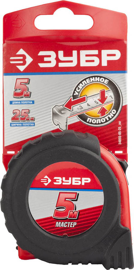 ЗУБР МАСТЕР 5м / 25мм рулетка с ударостойким обрезиненным корпусом