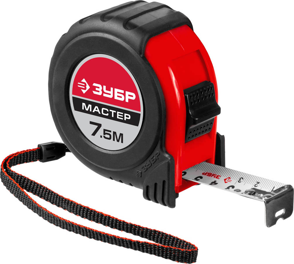 ЗУБР МАСТЕР 7,5м / 25мм рулетка с ударостойким обрезиненным корпусом