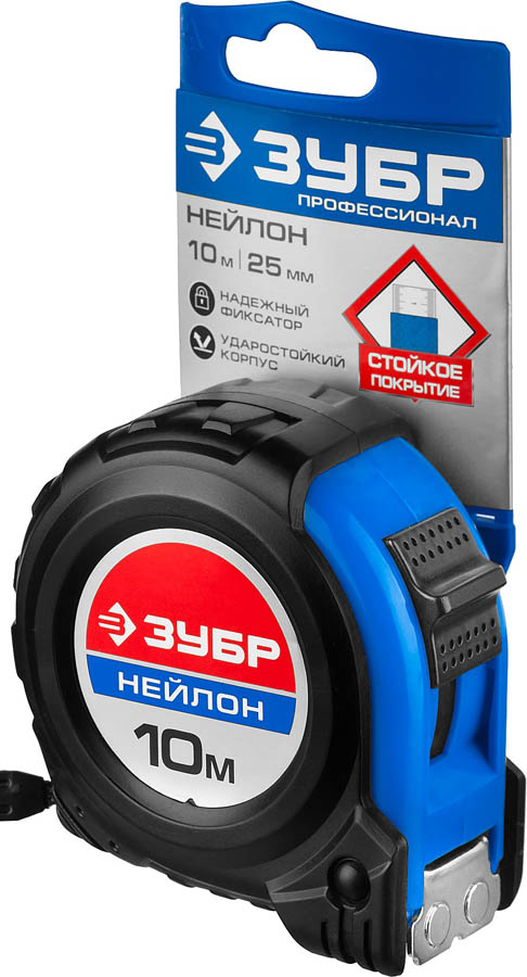 ЗУБР НЕЙЛОН 10м / 25мм рулетка с ударостойким обрезиненным корпусом