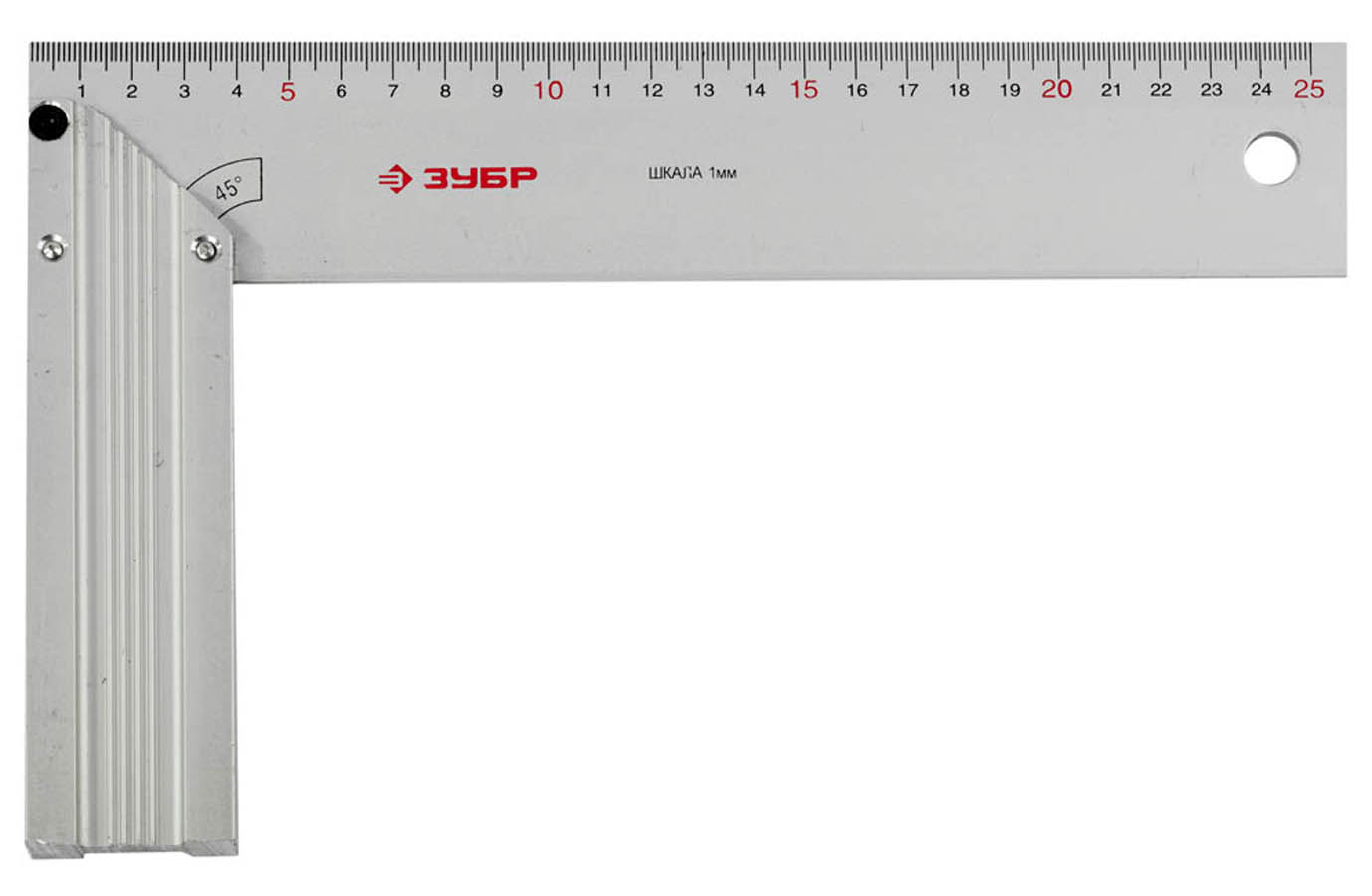 Угольник ЗУБР "ЭКСПЕРТ" столярный, жесткое профилированное полотно, усиленная алюминиевая рукоятка, 250мм