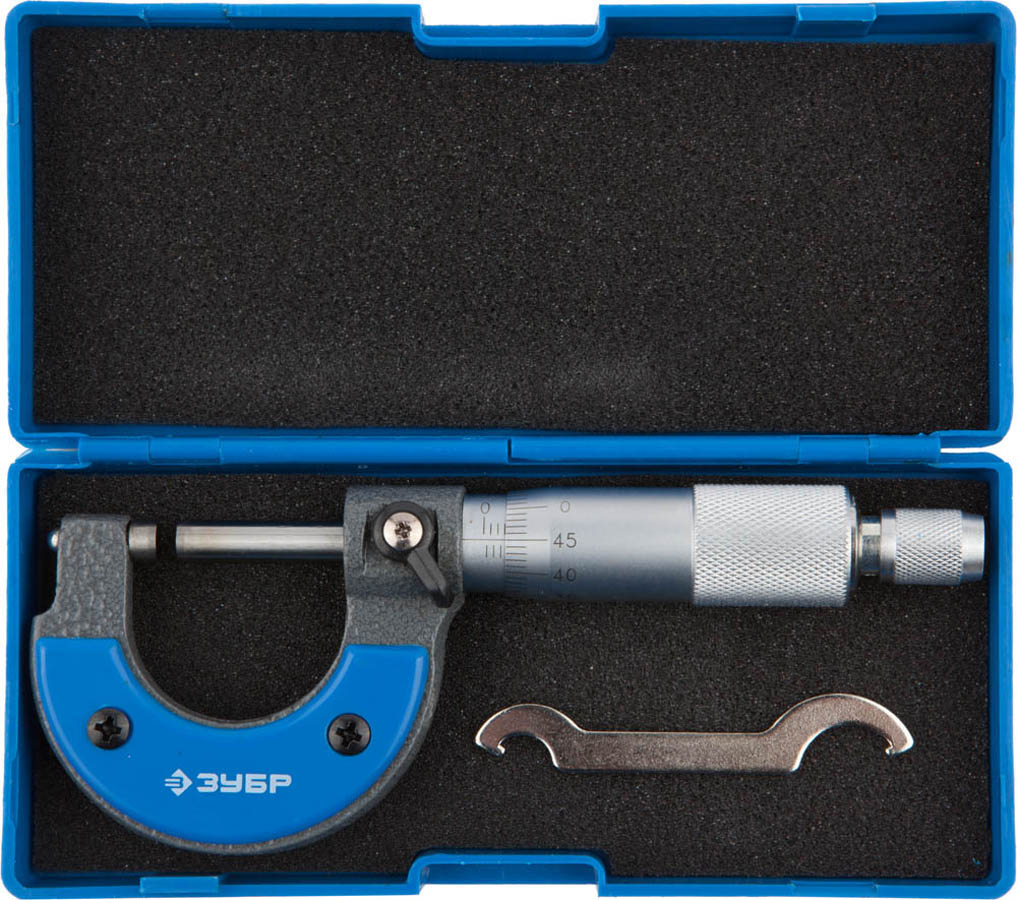 Микрометр ЗУБР "ЭКСПЕРТ" гладкий механический, МК 25, диапазон 0-25мм, шаг измерения 0,01мм