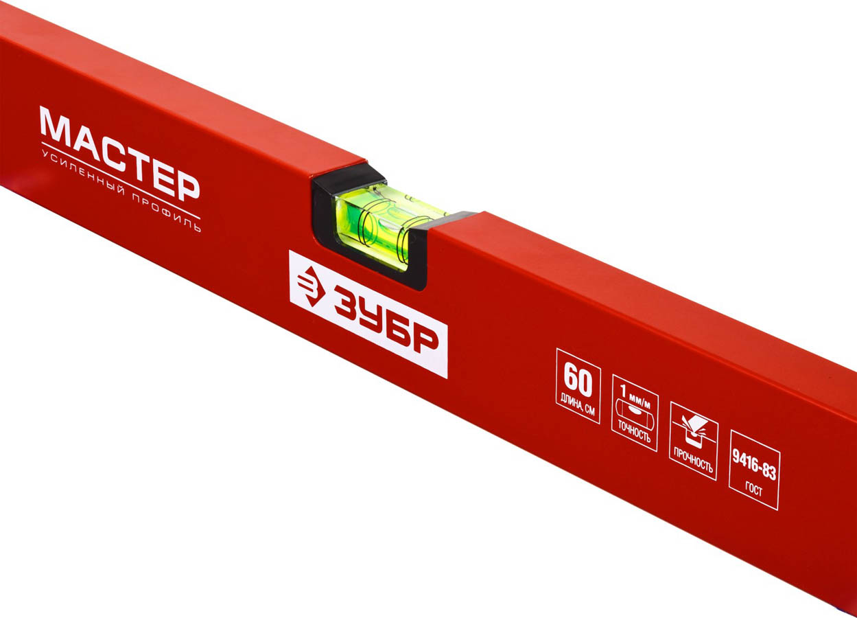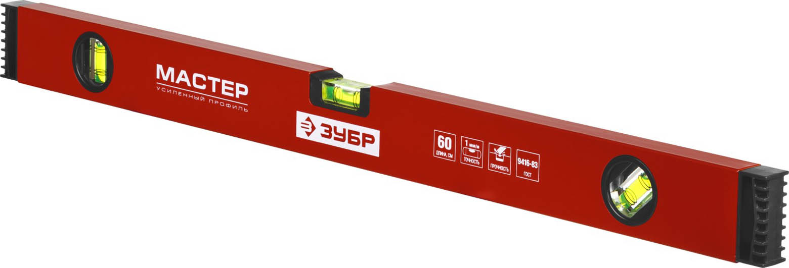 Уровень ЗУБР коробчатый, крашеный, 3 ампулы, фрезерованная базовая поверхность, 60 см
