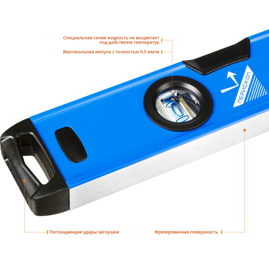 Уровень строительный ЗУБР 34587-100_z01, предназначен для контроля горизонтальности и вертикальности поверхностей. Изготовлены в соответствии с требованиями. Вертикальный глазок с окном на фронтальной плоскости для устранения ошибки углового зрения, увеличения скорости и удобства проведения измерений. Две дополнительные насечки на ампулах показывают уклон в 2°. Заглушки из ударопрочного пластика. Две ручки для удобства работы. Точность 0,5 мм/м.