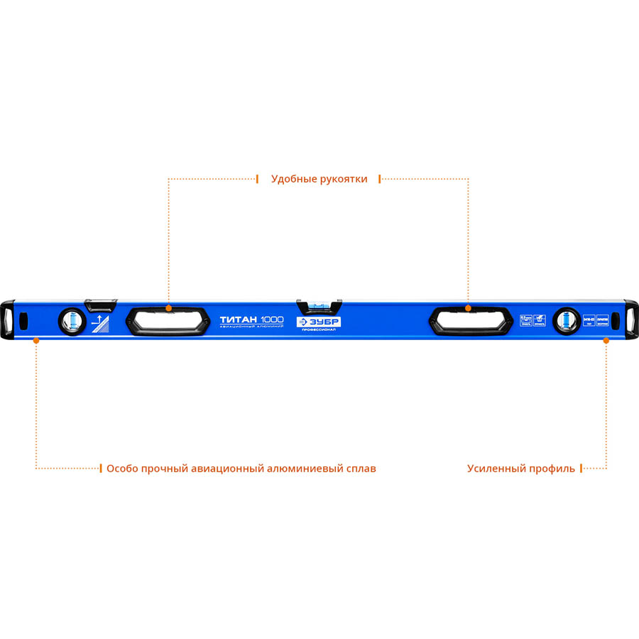 Уровень ЗУБР "ПРОФЕССИОНАЛ" "ТИТАН" с перископом, усилен, с ручками, 2 фрезерован поверхн, 3 противоудар ампулы, 100см