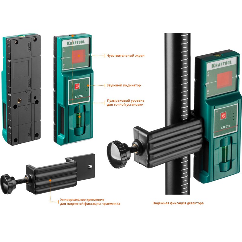 KRAFTOOL LL360 #4 нивелир лазерный, 2х360° , 20м / 70м, IP54, точн. +/-0,2 мм/м, держатель, детектор, в кейсе