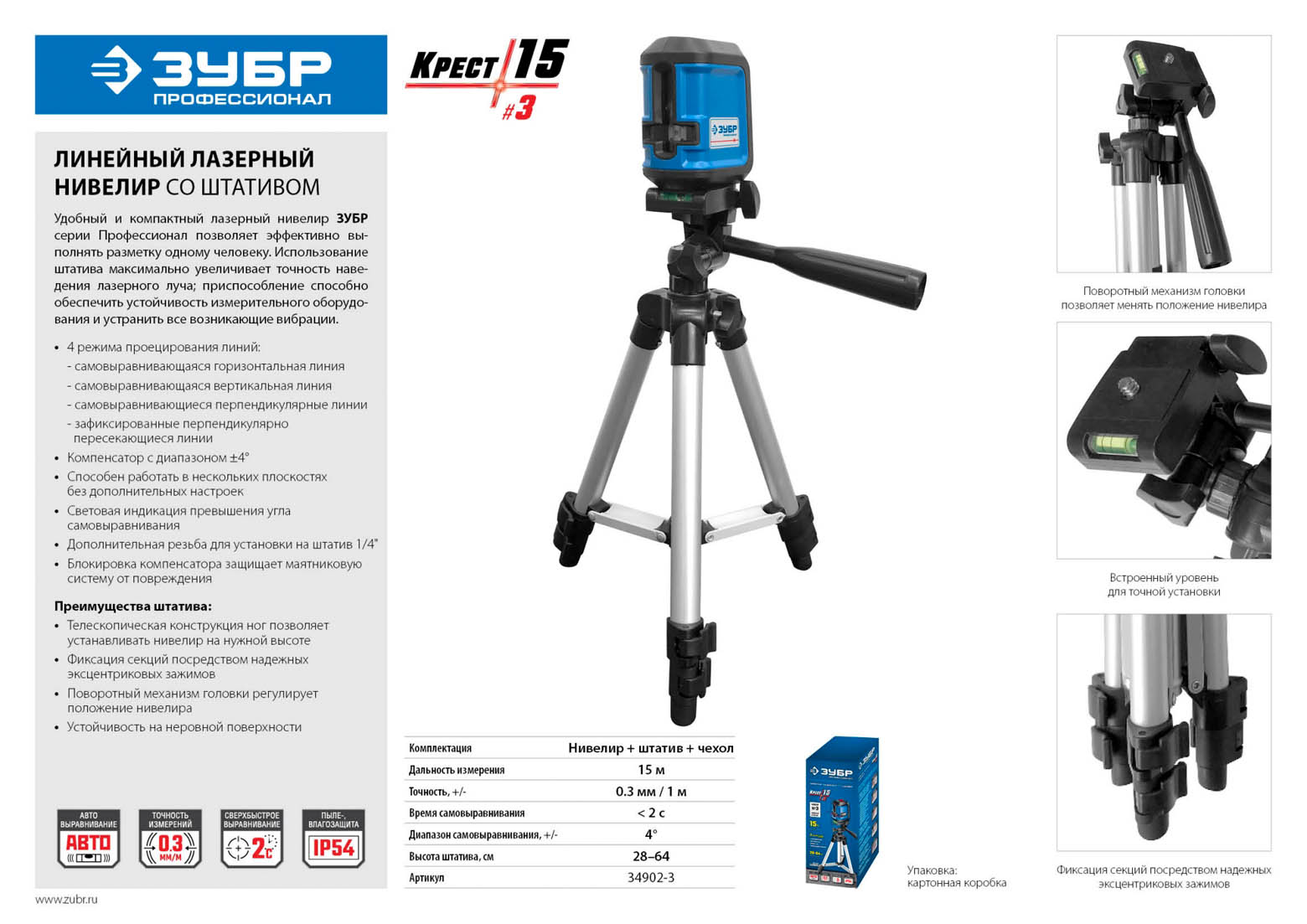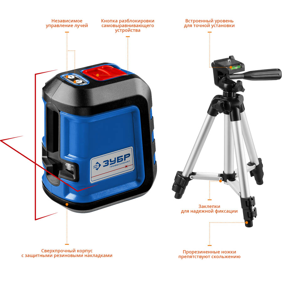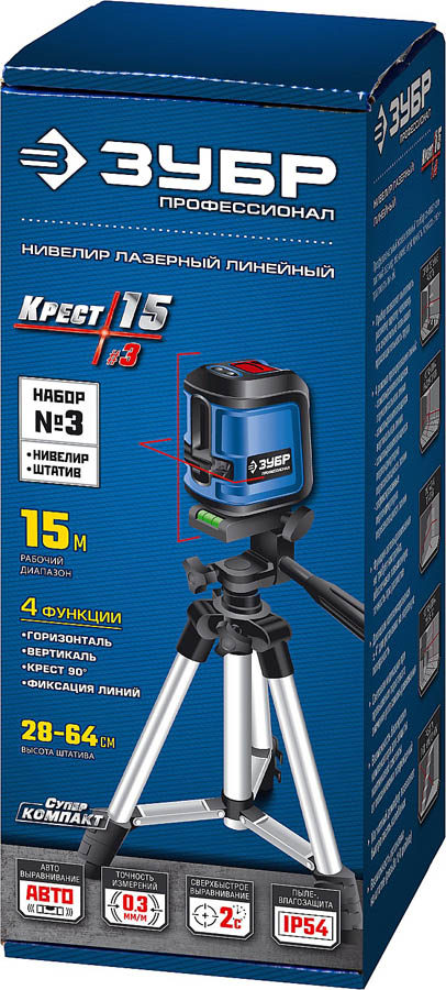 ЗУБР 15 м, линейный лазерный нивелир К-10 КРЕСТ-15 34902-3 Профессионал
