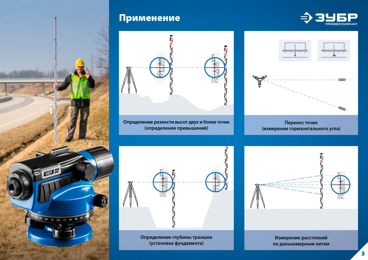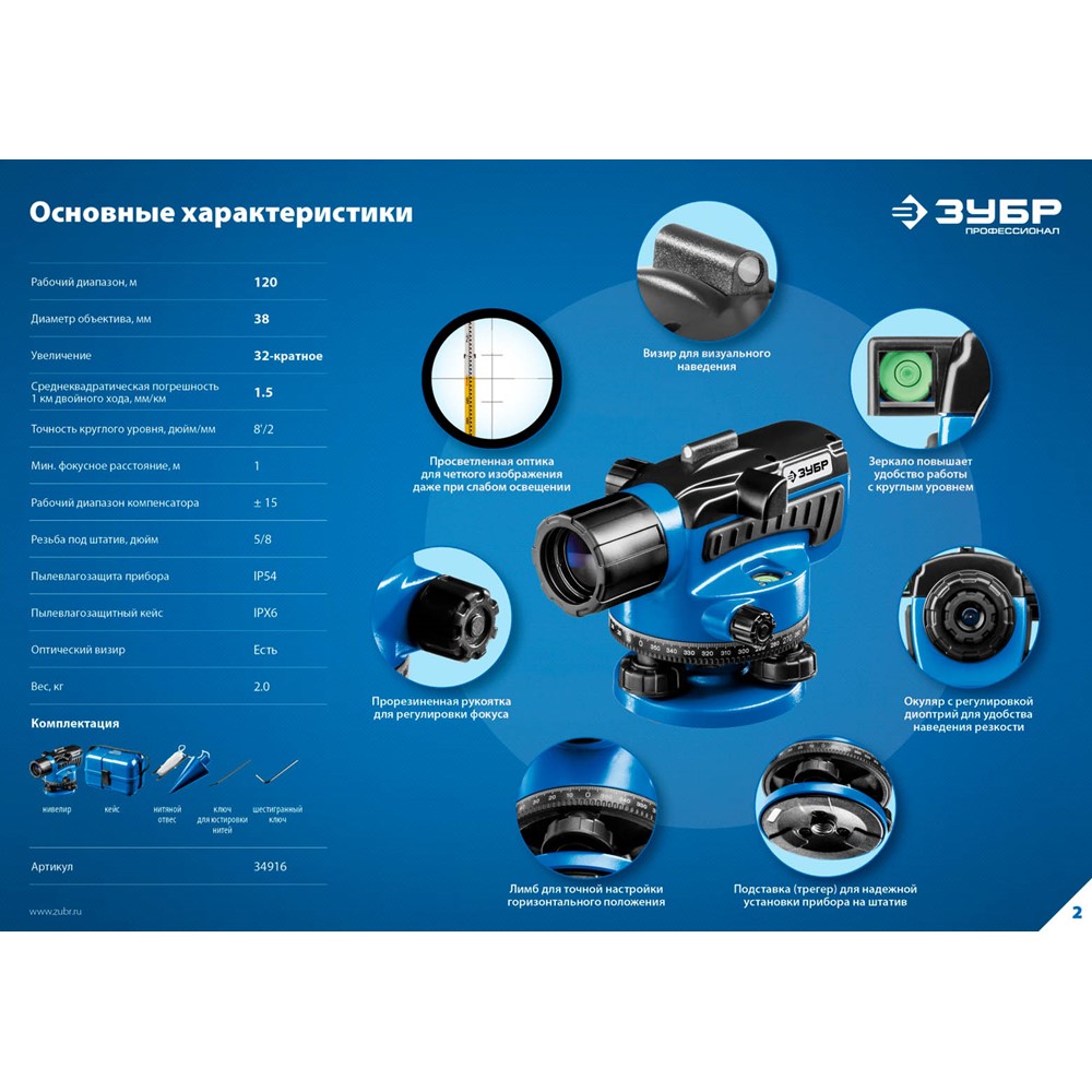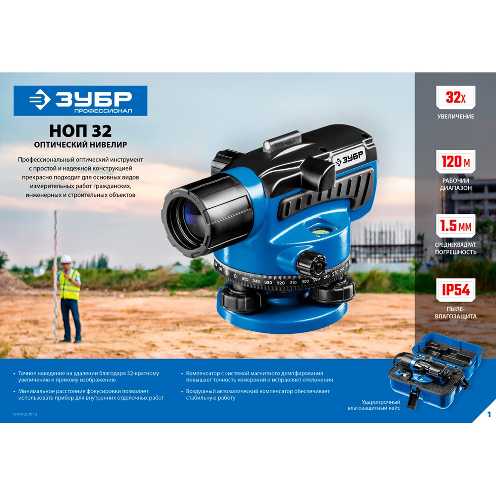 Оптический нивелир НОП-32 увеличение 32Х рабочий диапазон 120 м, ЗУБР Профессионал