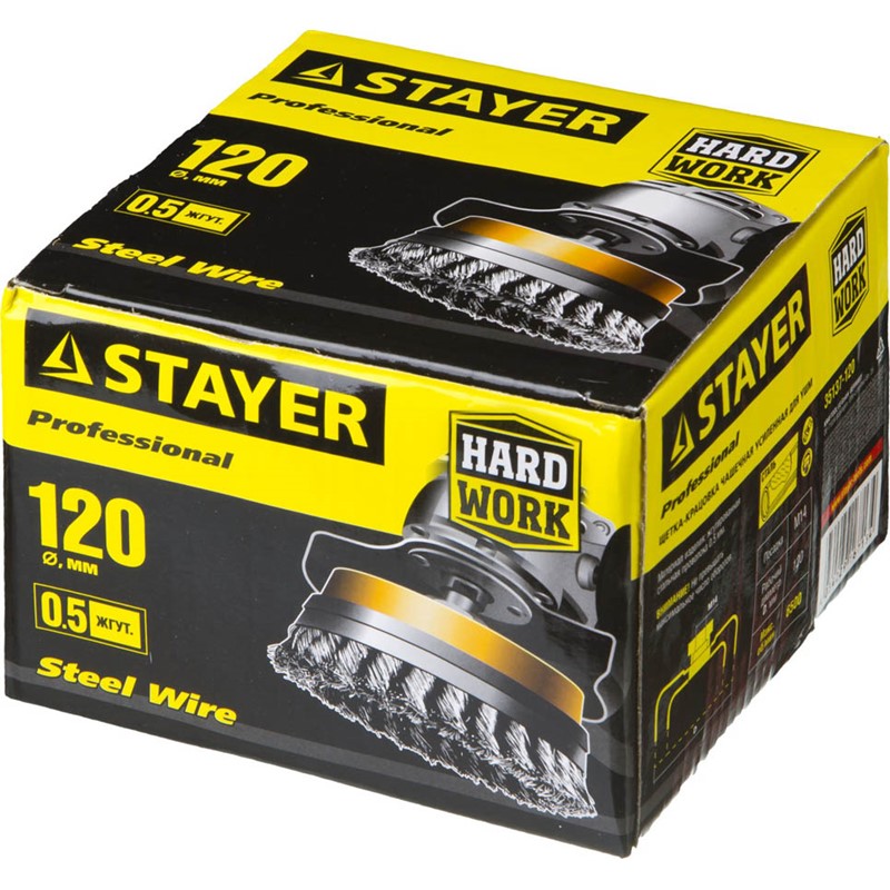 STAYER "PROFESSIONAL". Щетка чашечная усиленная для УШМ, жгутированная стальная проволока 0,5мм, 120ммхМ14