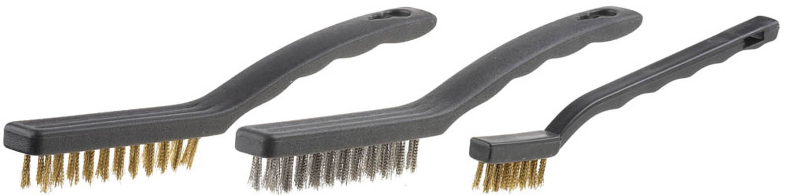 Набор щеток стальных с пластмассовой ручкой STAYER 3515-H3, предназначен для удаления ржавчины и краски, зачистки металлических, деревянных и других поверхностей.