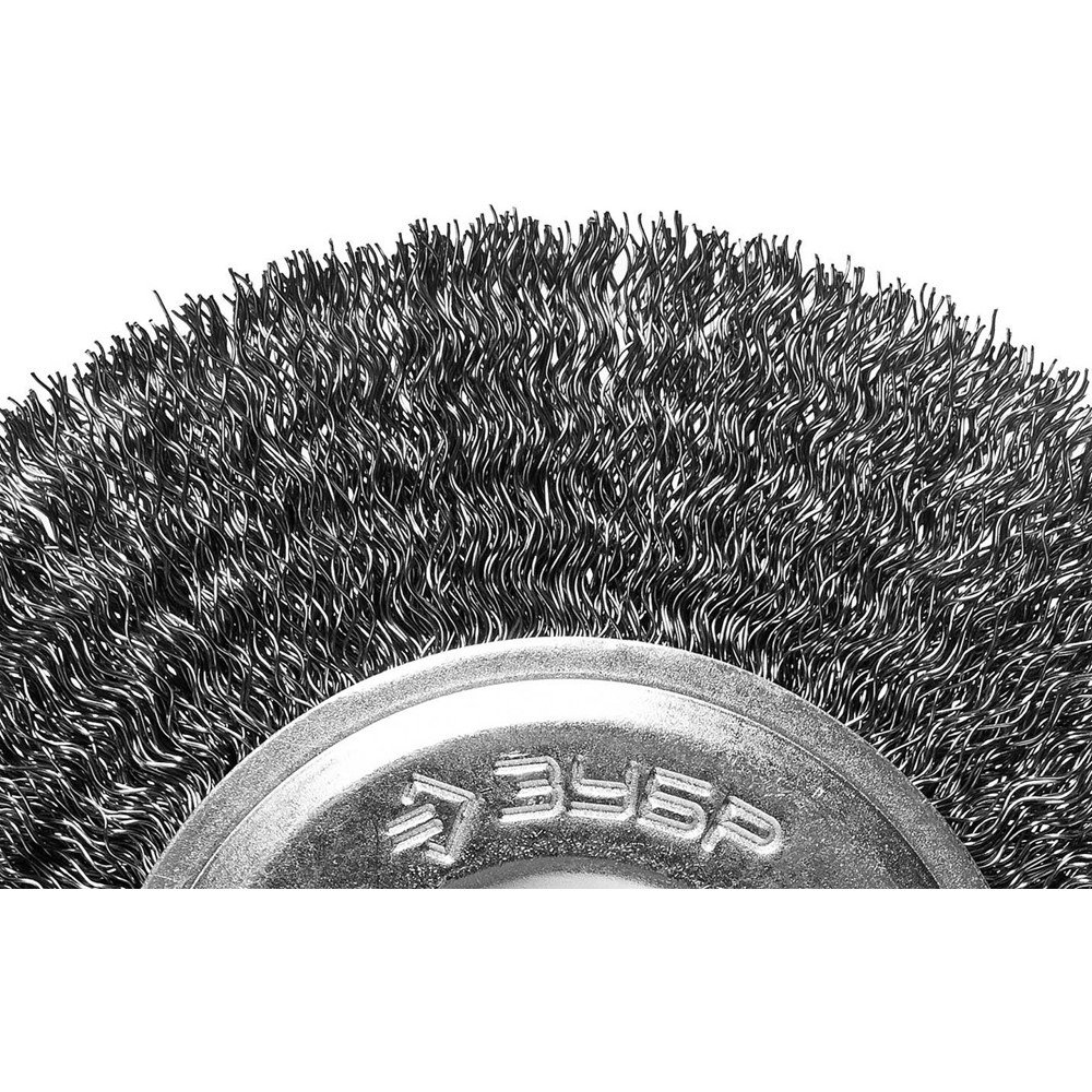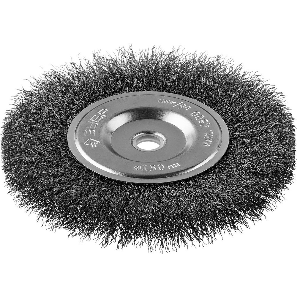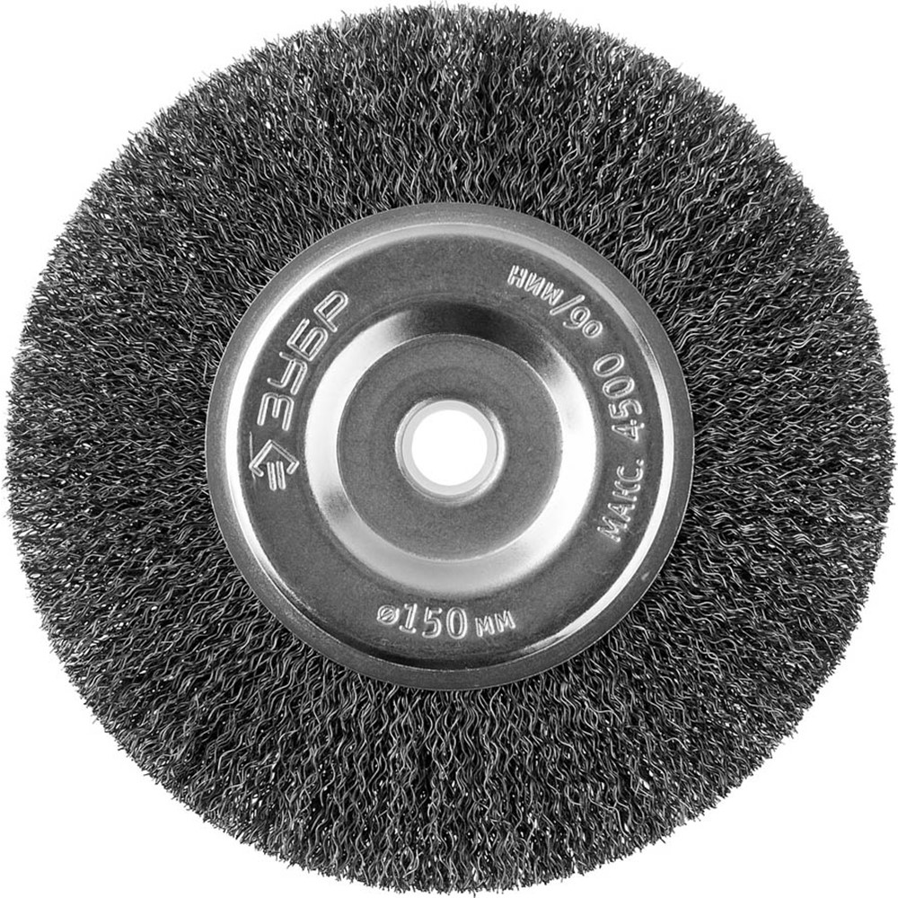 ЗУБР "ПРОФЕССИОНАЛ". Щетка дисковая для точильно-шлифовального станка, витая стальная проволока 0,3мм, 150х12,7мм