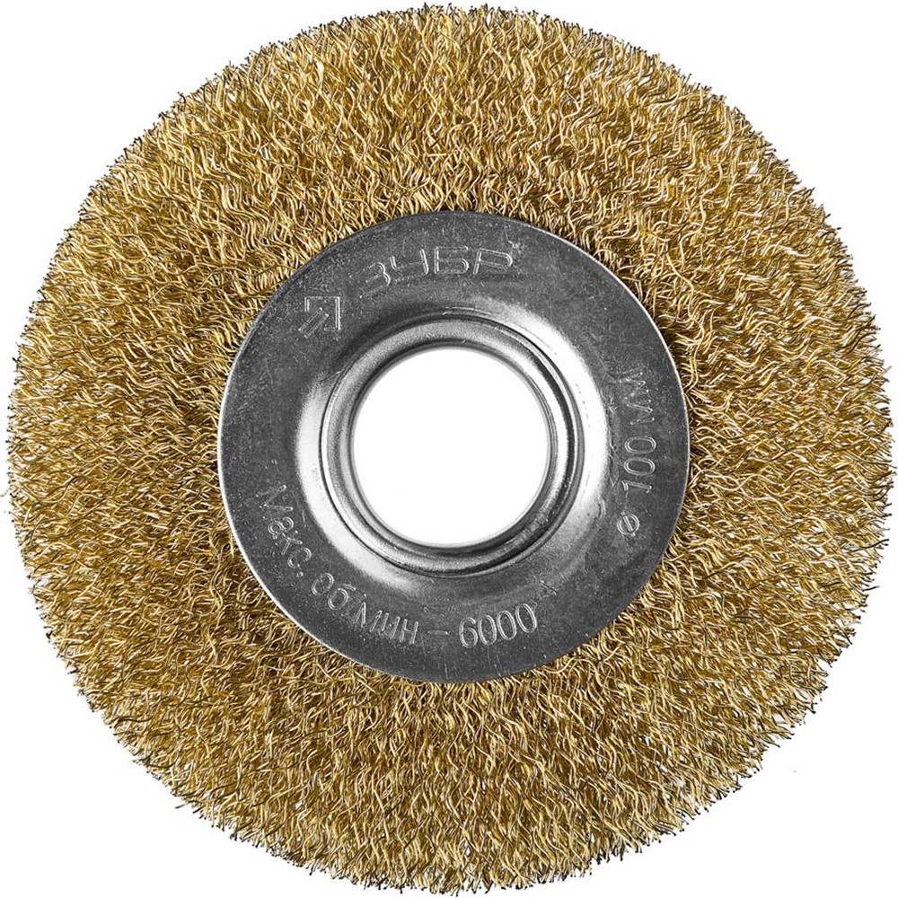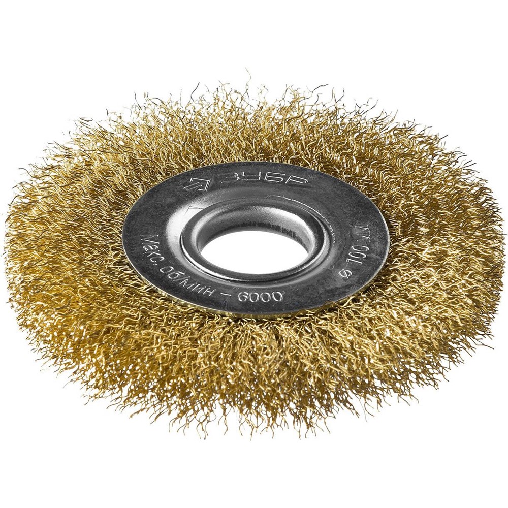 ЗУБР "ПРОФЕССИОНАЛ". Щетка дисковая для УШМ, витая стальная латунированная проволока 0,3мм, 100х22мм
