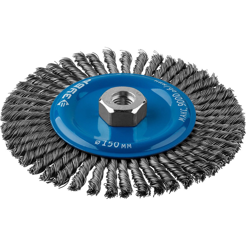 Щетка крацовка дисковая для УШМ ЗУБР 35192-150_z02, предназначена для зачистки поверхностей в труднодоступных местах от лакокрасочных покрытий, ржавчины, окалины, различных загрязнений с применением значительных усилий, а также для зачистки сварных швов. Щетка изготовлена из стальной жгутированной проволоки. Благодаря еще более высокой жесткости сплетенного пучка и увеличенной толщине проволоки щетка обладает повышенным ресурсом.