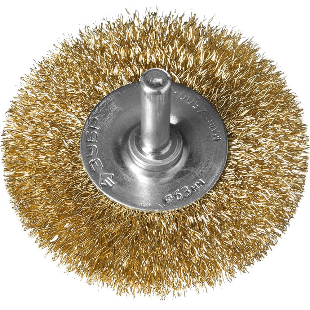 ЗУБР "ПРОФЕССИОНАЛ". Щетка дисковая для дрели, витая латунированная стальная проволока 0,3мм, 63мм