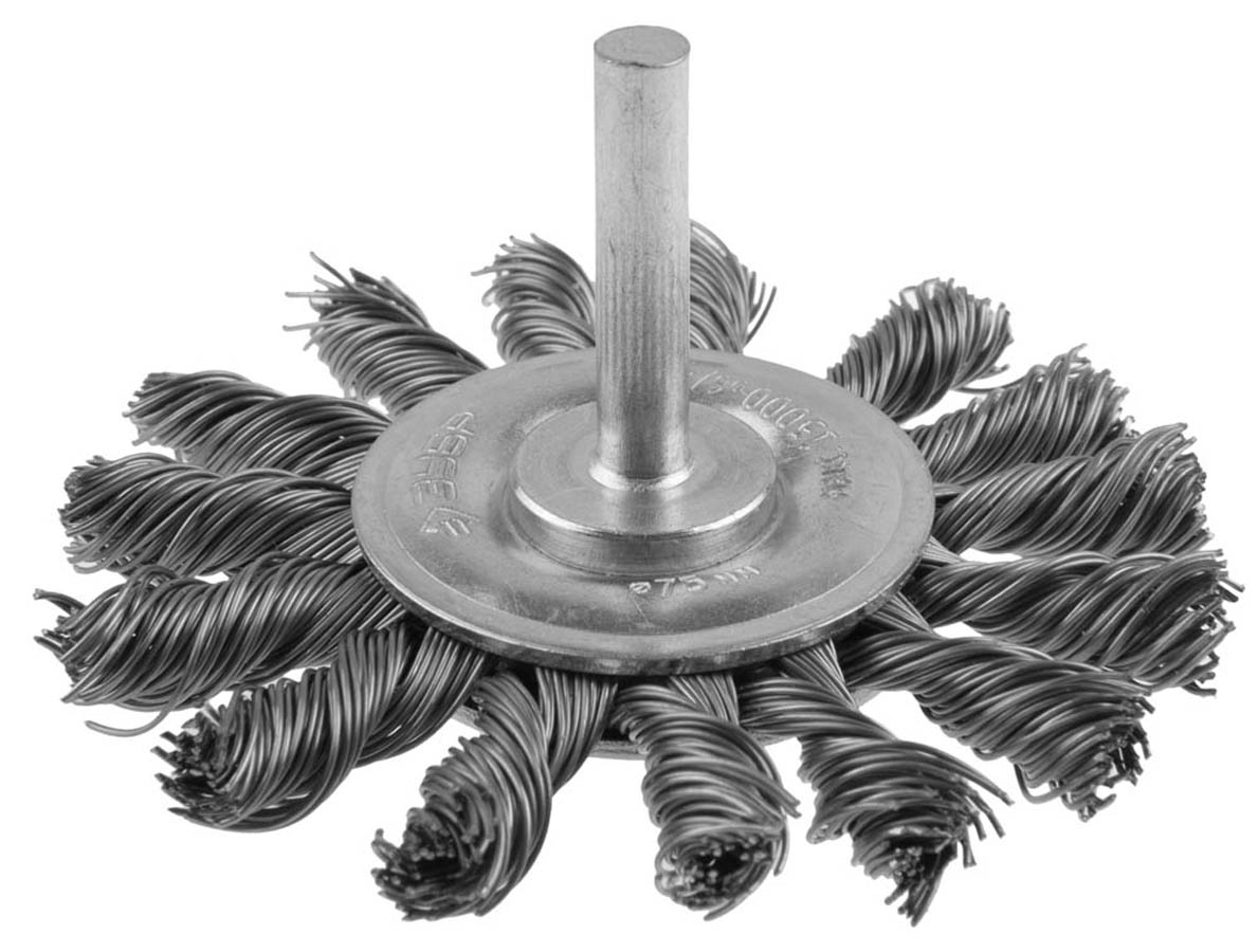 ЗУБР "ЭКСПЕРТ". Щетка дисковая для дрели, жгутированная стальная проволока 0,5мм, 75мм
