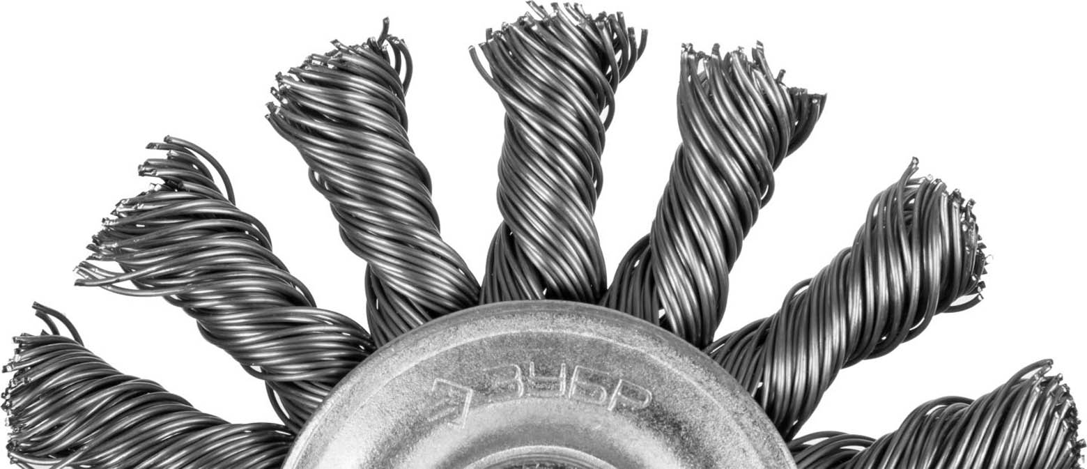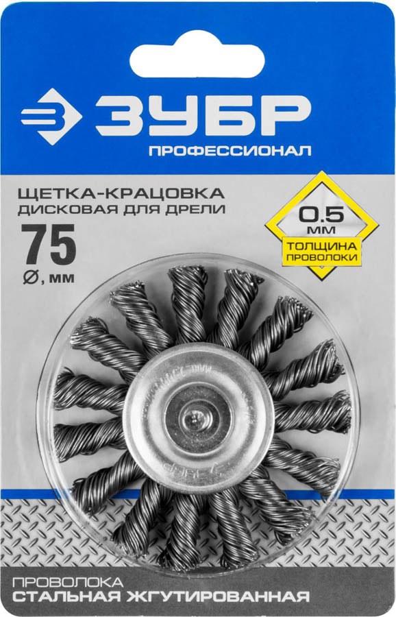 ЗУБР "ПРОФЕССИОНАЛ". Щетка дисковая для дрели, жгутированная стальная проволока 0,5мм, 75мм