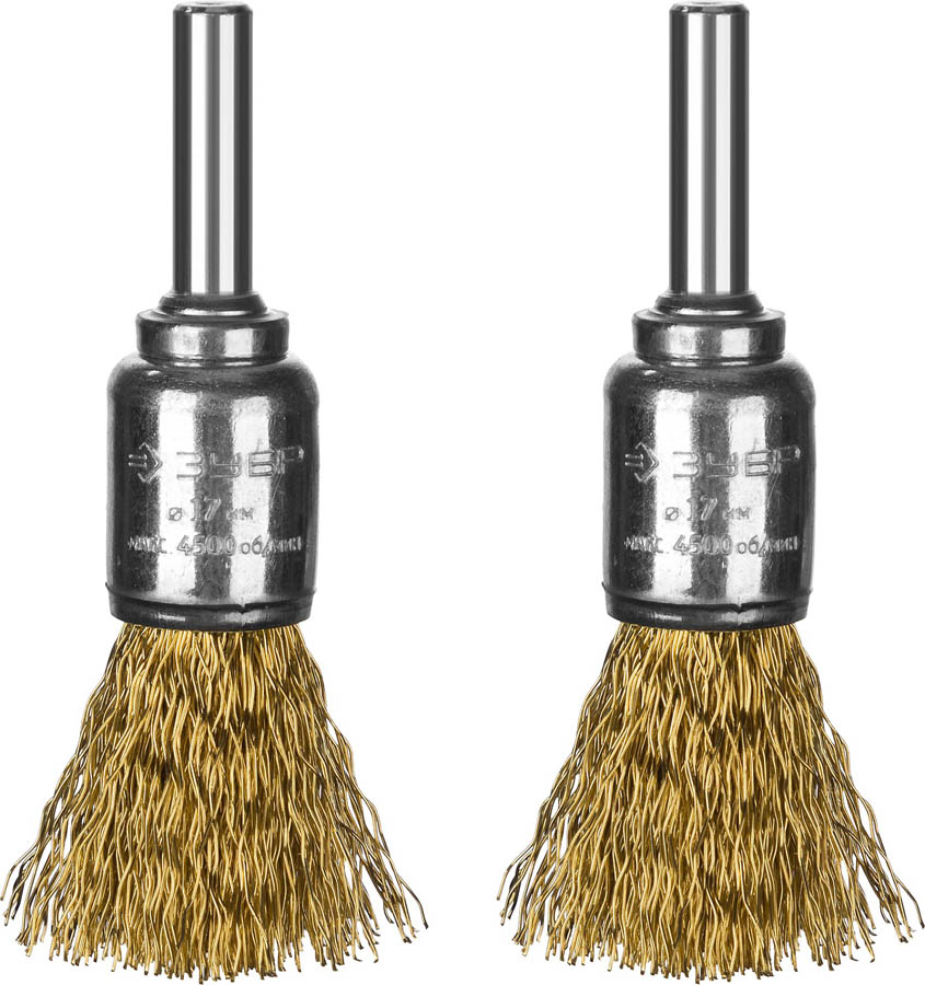 ЗУБР "ПРОФЕССИОНАЛ". Набор щеток кистевых для дрели, витая стальная латунированная проволока 0,3мм, 17мм, 2шт