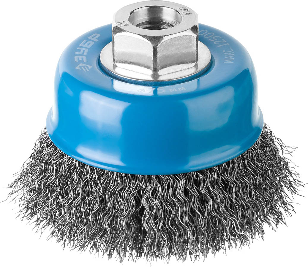 Щетка крацовка чашечная для УШМ ЗУБР 35261-075_z02, предназначена для удаления застарелых лакокрасочных покрытий, въевшейся грязи, ржавчины, окалины с поверхностей изделий из стали. Изготовлена из жгутированной стальной проволоки, обеспечивающей максимально-чистую обработку поверхности. Щетка крацовка прошла обязательный контроль качества, соответствует действующим стандартам качества и обеспечивает безопасную работу в четко регламентированном диапазоне оборотов.