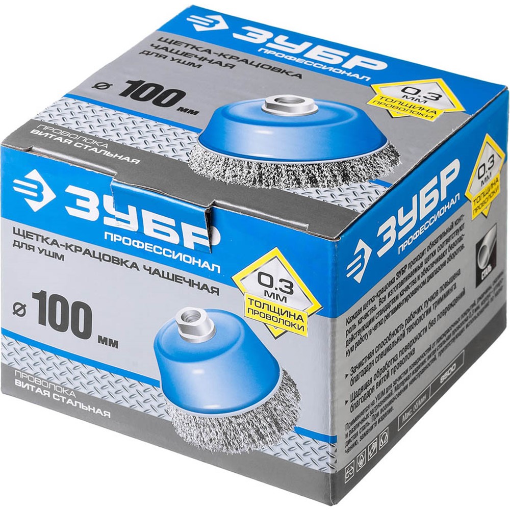 ЗУБР "ПРОФЕССИОНАЛ". Щетка чашечная для УШМ, витая стальная проволока 0,3мм, 100ммхМ14