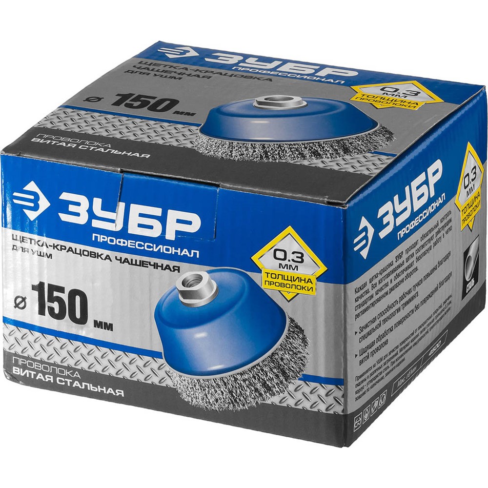 ЗУБР "ПРОФЕССИОНАЛ". Щетка чашечная для УШМ, витая стальная проволока 0,3мм, 150ммхМ14