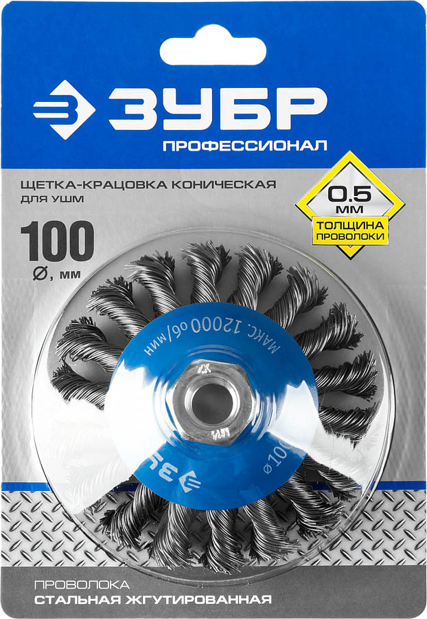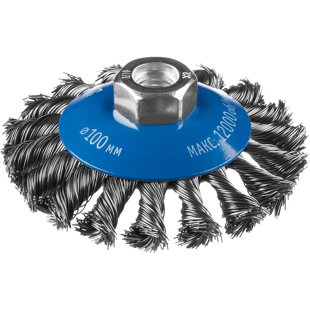 ЗУБР "ПРОФЕССИОНАЛ". Щетка коническая для УШМ, плетеные пучки стальной проволоки 0,5мм, 100ммхМ14