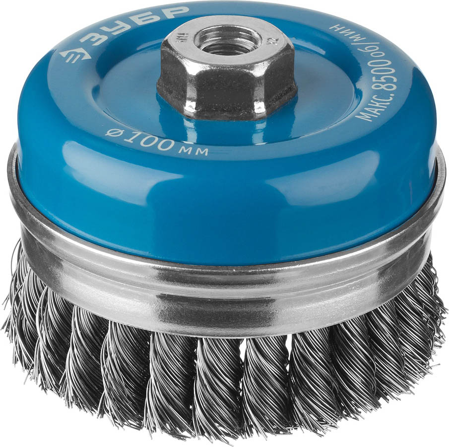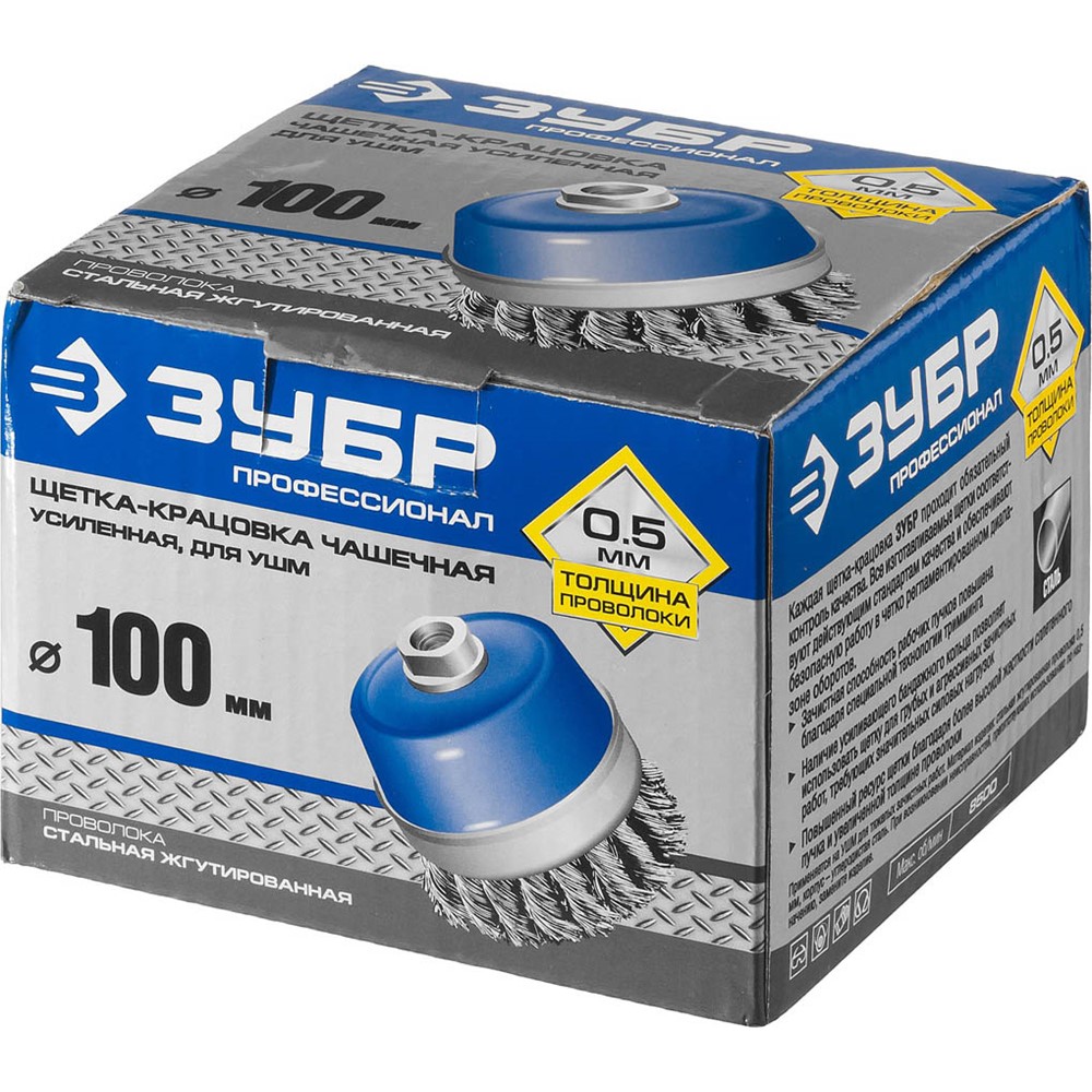 ЗУБР "ПРОФЕССИОНАЛ". Щетка чашечная усиленная для УШМ, плетеные пучки стальной проволоки 0,5мм, 100ммхМ14