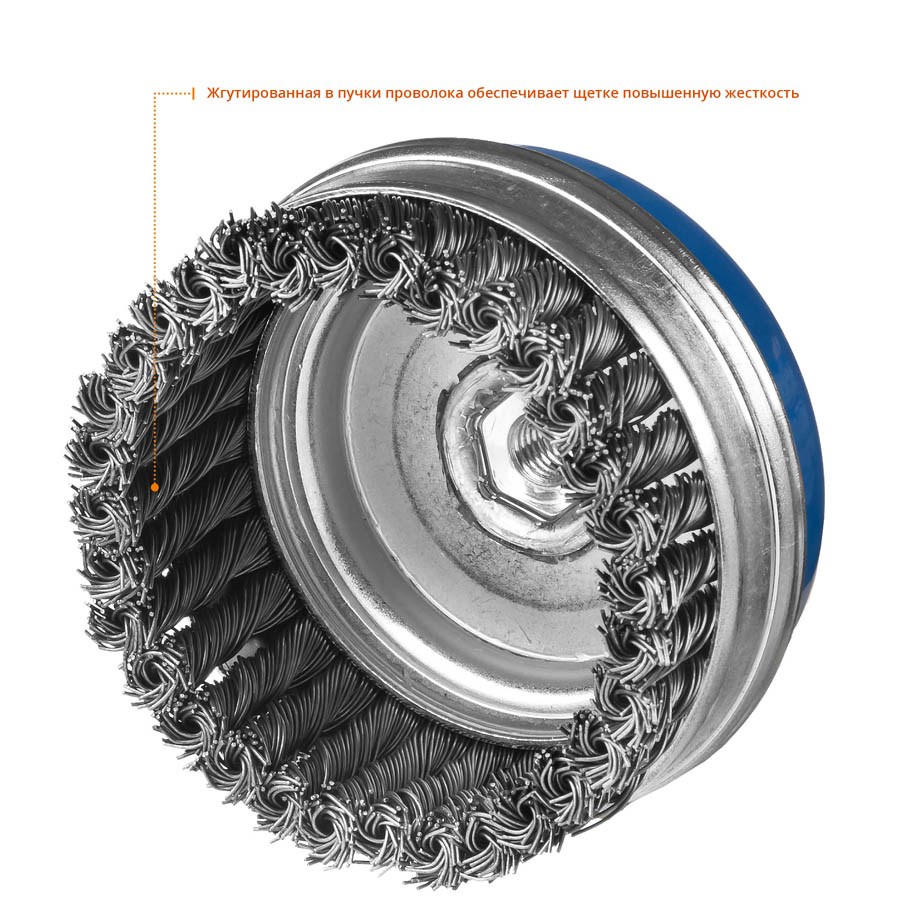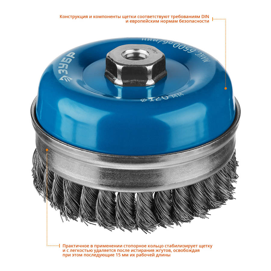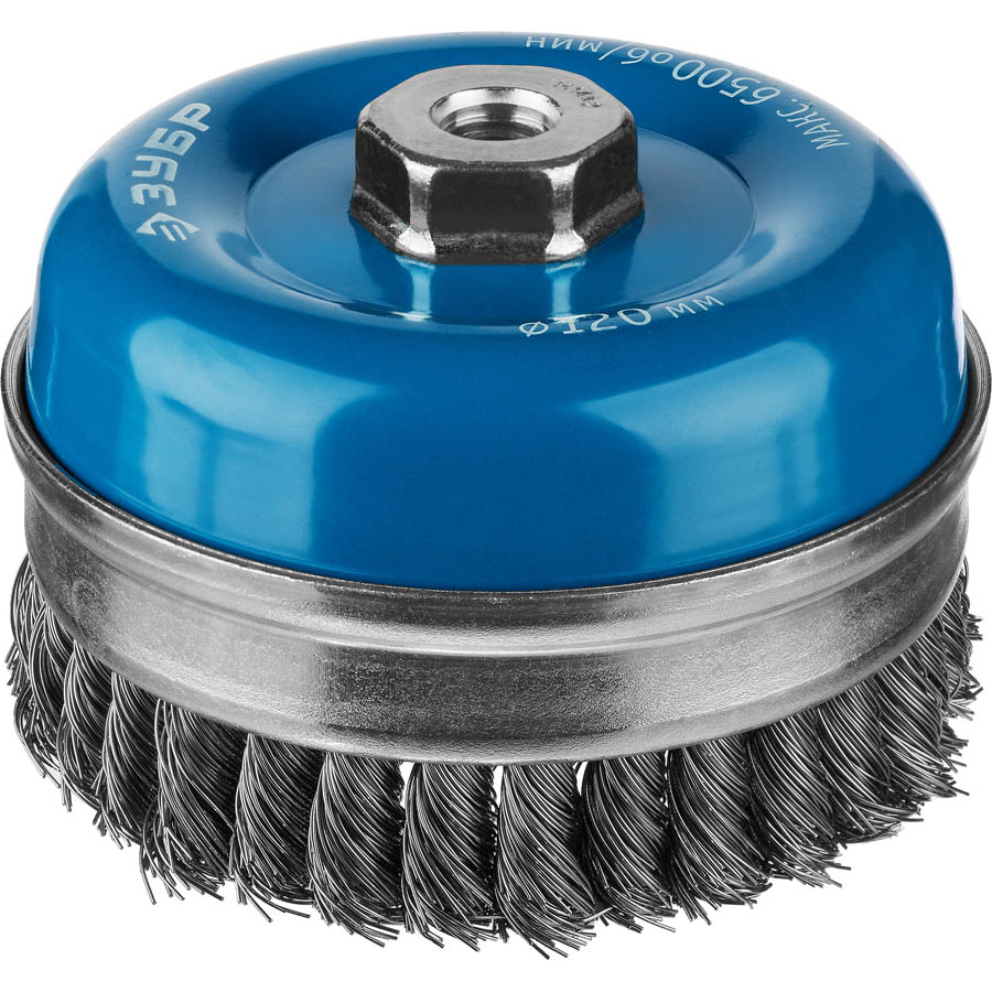 ЗУБР "ПРОФЕССИОНАЛ". Щетка чашечная усиленная для УШМ, плетеные пучки стальной проволоки 0,5мм, 120ммхМ14