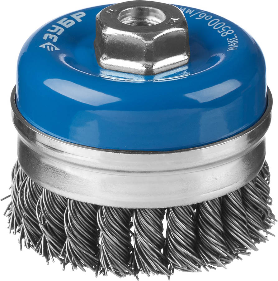ЗУБР "ПРОФЕССИОНАЛ". Щетка чашечная усиленная для УШМ, плетеные пучки стальной проволоки 0,8мм, 80ммхМ14