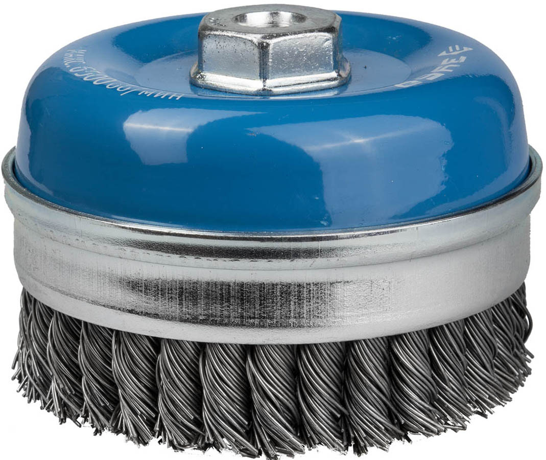 Щетка крацовка чашечная для УШМ ЗУБР 35271-100_z01, предназначена для удаления ржавчины, шлаков, окалины с металлических поверхностей. Идеально подходит для обработки сварных швов, отливок из чугуна, стали и цветных металлов. Максимальная частота вращения - 6500 об/мин. Изготовлена из жгутированной стальной проволоки, обеспечивающей максимально-чистую обработку поверхности. Благодаря еще более высокой жесткости сплетенного пучка и увеличенной толщине проволоки обладает повышенным ресурсом. Щетка крацовка прошла обязательный контроль качества, соответствует действующим стандартам качества и обеспечивает безопасную работу в четко регламентированном диапазоне оборотов.